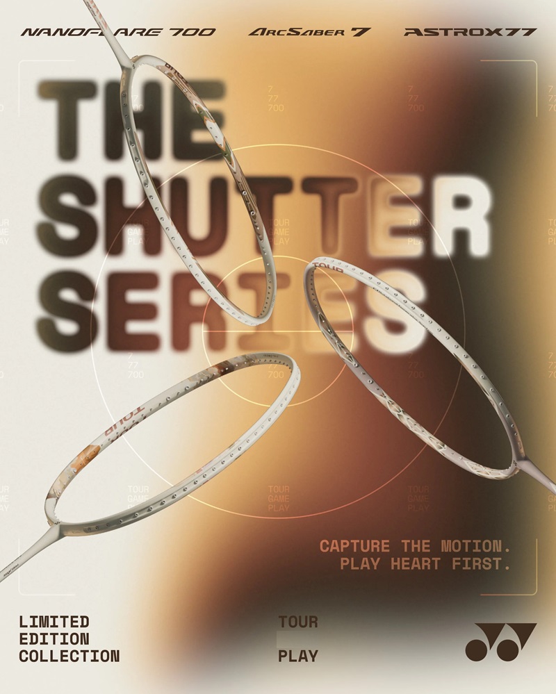Kurz und knapp: der Look. Yonex hat auf den Wunsch nach moderneren Designs reagiert. Die "Shutter"-Kollektion zeichnet sich durch ein cleanes, zeitgemäßes Finish aus, das sofort auffällt, wenn du den Court betrittst. Die Spezifikationen, Balancepunkte und Materialien sind exakt so, wie du es von den Standardmodellen Arcsaber 7, Nanoflare 700 und Astrox 77 gewohnt bist.
